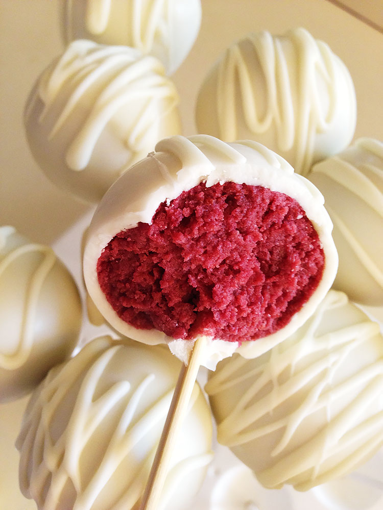 I got my (washed) hands nice and dirty with mixing the delicious frosting with the even more delicious Red Velvet cake! Once the texture was right, I rolled the cake in my hands, and made nice little round cake balls, as smooth as possible.