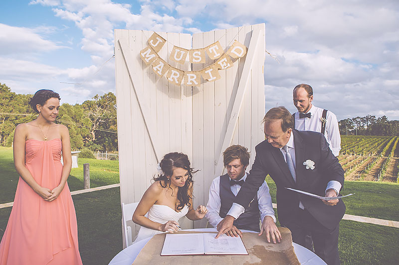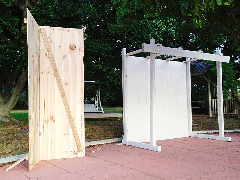 First we built it, then we painted and sanded it back. Afterwards, we built a second stand and painted it to match, to have behind us while we signed the registry.