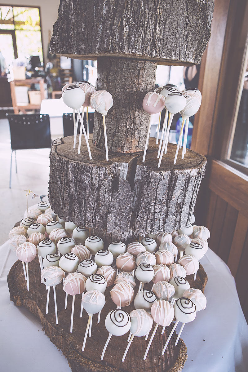 We sliced up a wooden log, and created a 4-tier cake pop stand! We would later take it apart and drill in 156 holes for the sticks. Then I varnished it up, and got it ready to put the cake pops in!