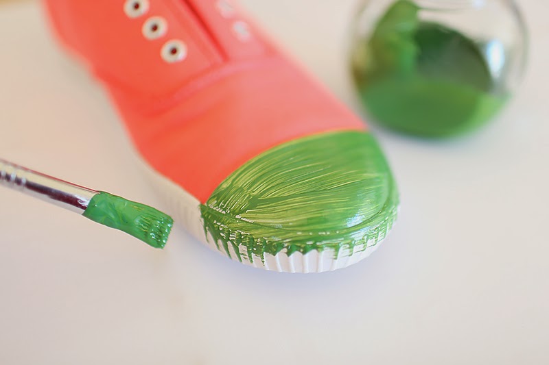 Watermelon themed items are still everywhere you look. I saw this fun diy shoe tutorial over on Call It Spring, and I decided to do my own version of watermelon shoes!